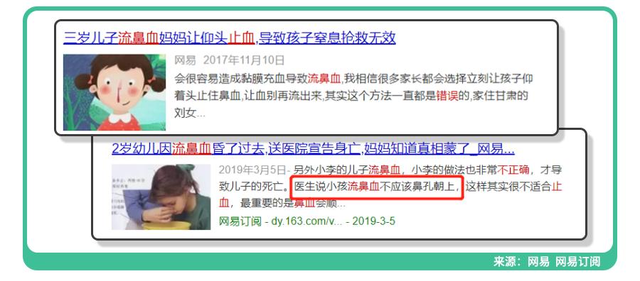 图片来源:科学家庭育儿原创由于娃的气道窄小,要是头往后仰,造成血液倒流,很容易流进嗓子、胃里、气管中,而且鼻血是极容易凝固成血块的,大大增加了窒息风险!