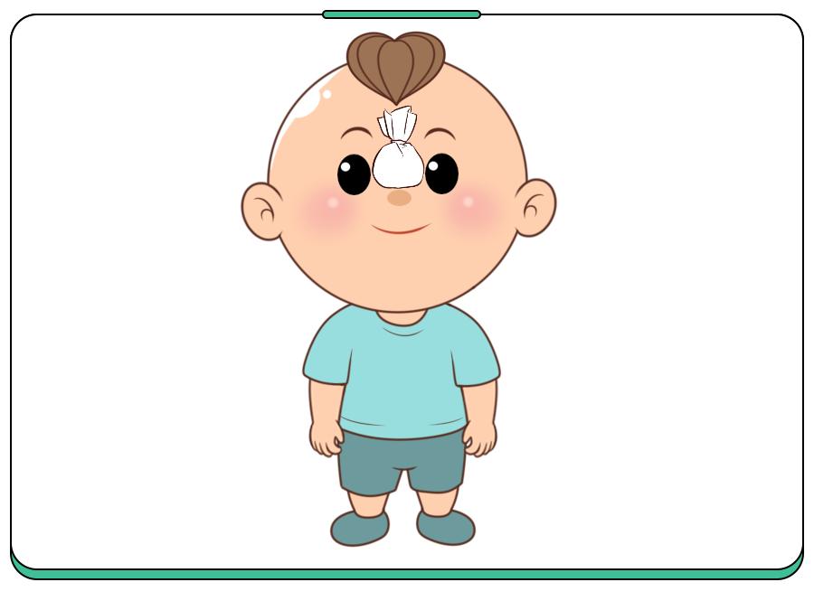 用手指按住出血一侧的鼻翼,向鼻中线方向的斜上方推挤。双侧出血,需同时按压,并提醒娃保持张口呼吸状态,以防被呛到。