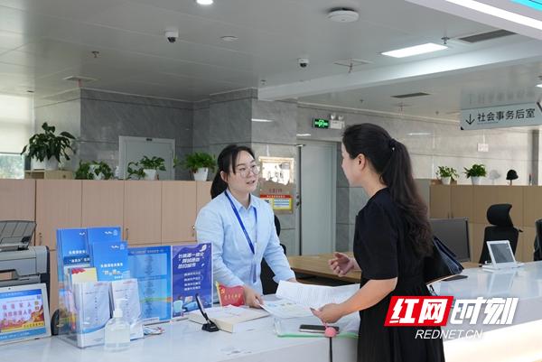 在长沙市天心区政务服务中心大厅,市民正在咨询“跨域通办”业务。