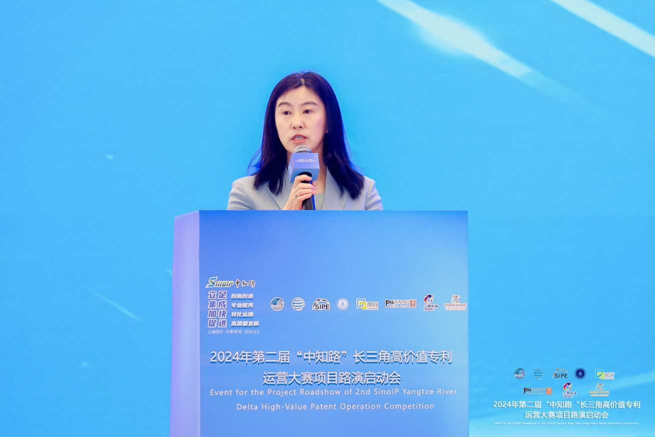 丁惠玲在致辞中指出,党中央、国务院高度重视知识产权转化运用工作。去年10月,国务院常务会议审议通过《专利转化运用专项行动方案(2023-2025年)》,为确保专项行动任务的落实,国家知识产权局联合相关部委出台了《高校和科研机构存量专利盘活工作方案》和《专利产业化促进中小企业成长计划实施方案》。截至今年5月底,全国高校和科研机构已盘点123.3万件存量专利,其中发明专利83.4万件,盘点进度超过80%,取得了显著的阶段性成效。高价值专利是实现高效益转化的基础,也是新质生产力的重要供给。长三角地区作为我国经济活跃、开放度高、创新能力强的区域,专利转化潜力巨大。在长三角“三省一市”知识产权部门的指导支持下,上海国际运营平台牵头,联合长三角相关知识产权交易运营机构共同举办高价值专利运营大赛,是推动区域科技产业要素融汇、知识产权资源互通,促进长三角一体化高质量发展的有益探索和有力举措。希望今年以本次大赛为契机,各知识产权服务机构积极参与专利转化工作,与企业、高校、科研院所和医疗机构等创新主体共同为发展新质生产力、推动高质量发展贡献更多知识产权力量。