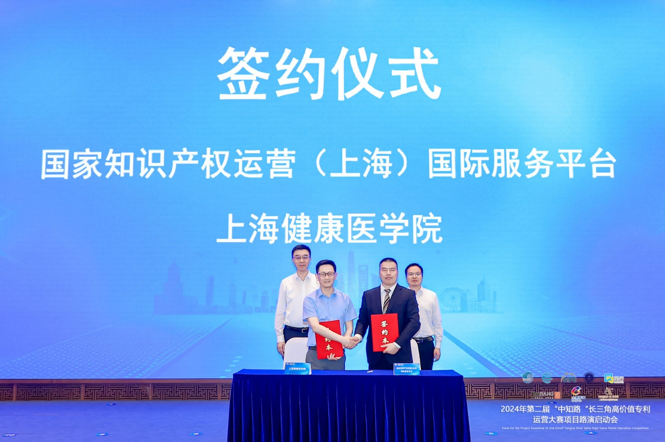 致辞环节后,国家知识产权运营(上海)国际服务平台与上海健康医学院举行了签约仪式,双方将共同建设运营上海健康医学院生物医药国际技术转移协同创新平台,并就有关知识产权领域的创新创造、运营管理、产业孵化、国际交流和维权保护等方面开展全面合作。