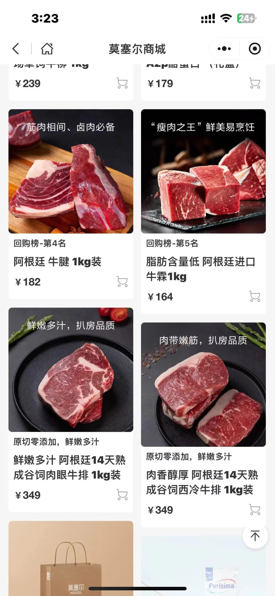 来源:莫塞尔电商小程序蓝鲸记者致电莫塞尔商城,询问近期牛肉销售情况,客服回应称目前确实有部分牛肉已经卖断货了,需要等待几天。