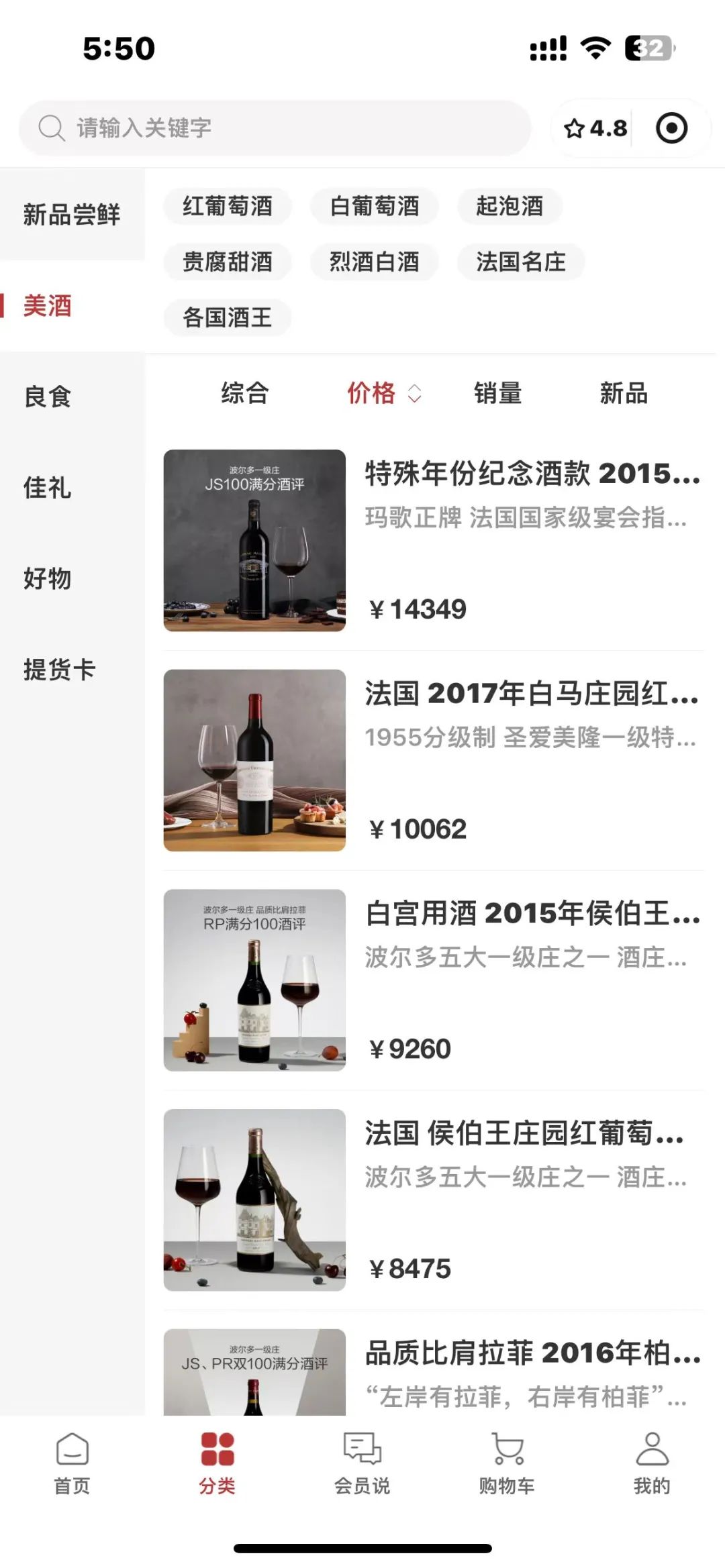 华为的莫塞尔商城中在售的商品除了牛肉之外,还有各种酒类和食品,定位均为中高端产品。蓝鲸新闻记者查询发现,莫塞尔商城中目前在售商品类目超百款,其中超过一半的商品为酒类,价格最高的一款“特殊年份纪念酒款”单瓶售价高达14349元。