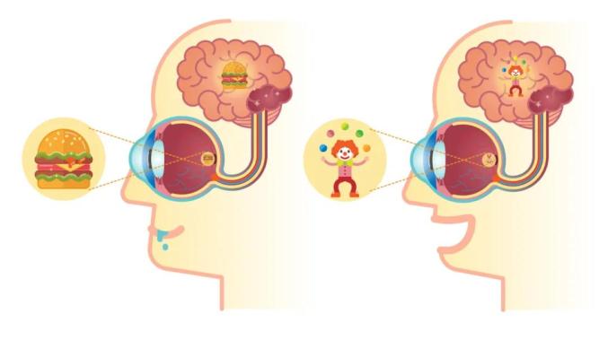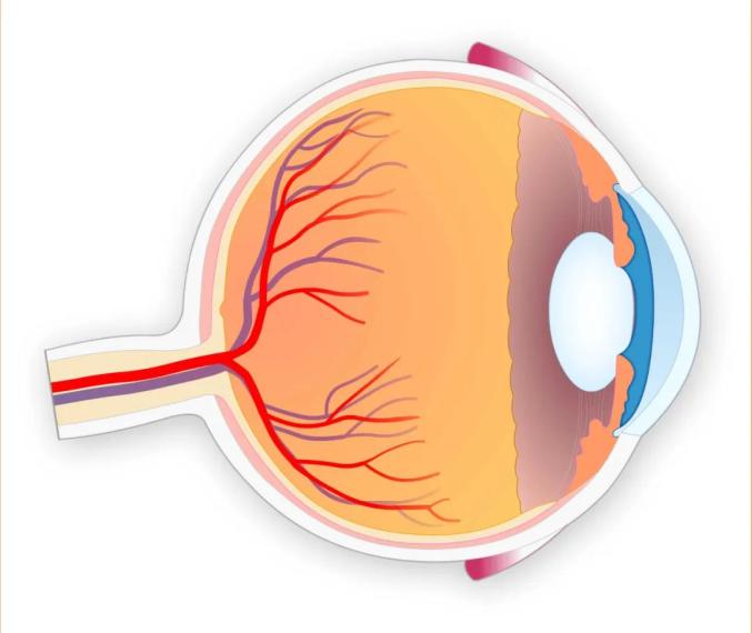 晶状体后面是玻璃体,光线最后透过玻璃体,汇聚成一个焦点,落在视网膜上。视网膜上有丰富的感光细胞和色素细胞,感受光线和颜色,并将光信号转化为神经信号。再通过视神经传输到大脑,在大脑的视觉中枢里处理加工,最终形成我们看到的图像。