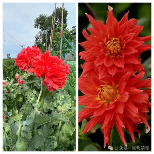 近日接到春城好网民举报,说有人疑似种植罂粟,昆明禁毒联合官渡分局立马对举报区域进行了无人机侦测,并发现种植点,这次发现的罂粟为一株多头重瓣罂粟花,其长相和大丽花很相似,今天带大家了解一下不一样的重瓣罂粟花。重瓣罂粟与单瓣罂粟的区别