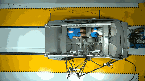 测试结果显示,在正向碰撞当中,未系安全带的后排乘客在碰撞当中会因惯性力向前移动,膝部以及头部会与前排乘客座椅发生严重碰撞,并在碰撞后向上方移动,头部与汽车顶棚再次发生碰撞,有颈部、头部重伤致死的可能。