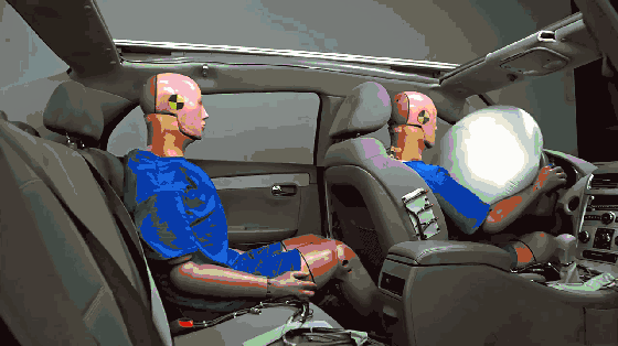 而同时更加引起重视的现象是,后排乘客因未系安全带,在发生碰撞时向前移动挤压前排乘客座椅,导致前排乘客被重重地按在方向盘上,弹出的气囊几乎丧失了任何保护作用,即便前排乘客系上了安全带,也有极高的死亡可能性。