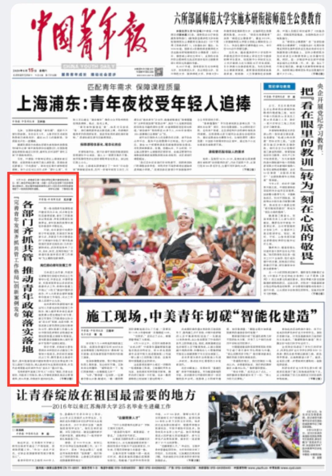 原标题:《中国青年报头版——各部门齐抓共管 推动青年政策落实落地》