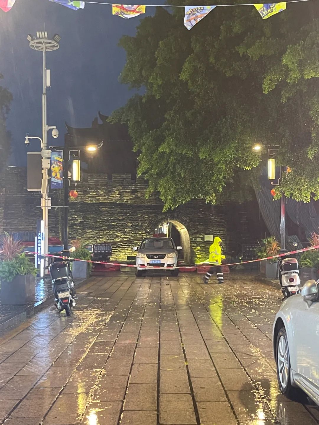工作人员对现场进行围挡,行人在南门外十米的范围就被禁止靠近。“虽然只是南门城墙中间一小部分坍塌,但是暴雨红色预警仍在生效中,出于安全考虑,我们希望大家能尽快回家。”该工作人员告诉记者,南门城墙坍塌后,大鹏新区旅游发展和文化体育局、大鹏办事处工作人员第一时间赶到现场进行应急处理,对现场进行围挡,对西侧凸角进行支撑,转移周边民居居住人员,防止造成次生灾害。