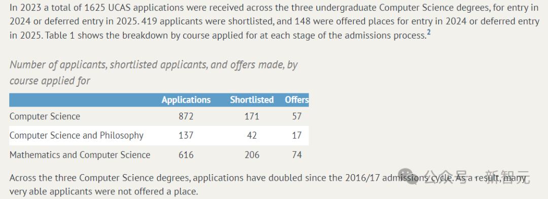 牛津大学申录数据自学院开始招生以来,牛津大学三个计算机科学学位的申请量增加了一倍。由于竞争太过激烈,许多能力出众的申请者未能获得录取。
