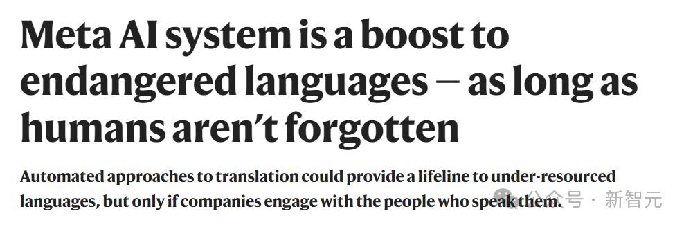 【新智元导读】Meta AI的NLLB-200登上Nature,「不让任何一门语言掉队」,能翻译200种语言的大模型获得Nature社论的盛赞——复兴了濒临灭绝的语言,但是Nature研究人员也郑重提醒Meta,必须将使用这些语言的社区也纳入进来,才会真正减缓语言的消亡。