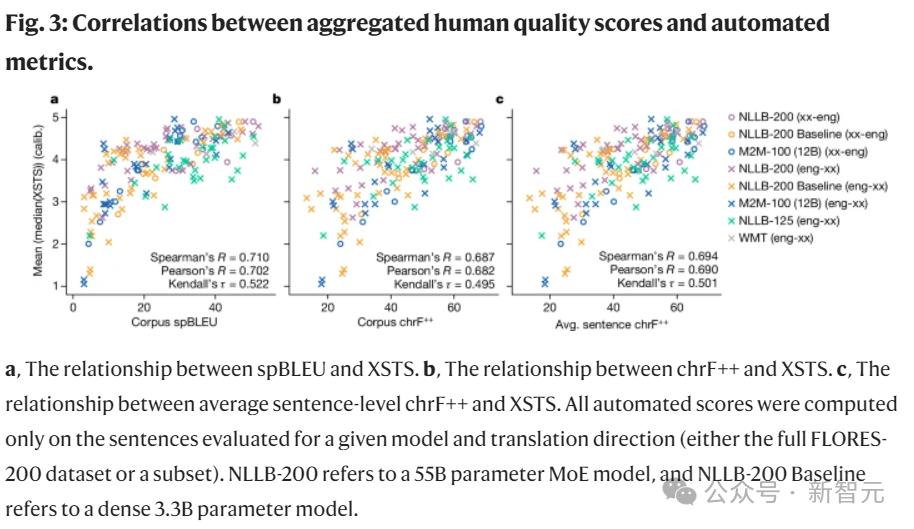 与之前的SOTA相比,根据BLEU(Bilingual Evaluation Understudy,一种基于分数的双语评估方法)评分,NLLB模型翻译质量平均提高了44%。