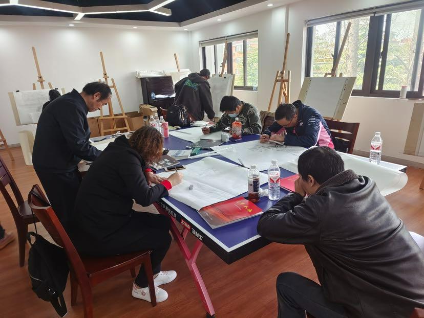 此次培训由金山农民画主要创作骨干之一的王金喜老师授课,与以往教的学生相比,这次培训班的学员比较特殊,对此,王金喜老师也付出了更多的耐心。充分考虑学员的不同情况,逐字逐句讲透,手把手指导。从金山农民画的起源发展,到农民画的作品赏析;从主题思想的构思,到颜料配色、基本构图等等,都进行了细致讲解。对学员们的线稿,也会进行点评并给出详尽的建议和指导,让他们的作品更上一层楼。