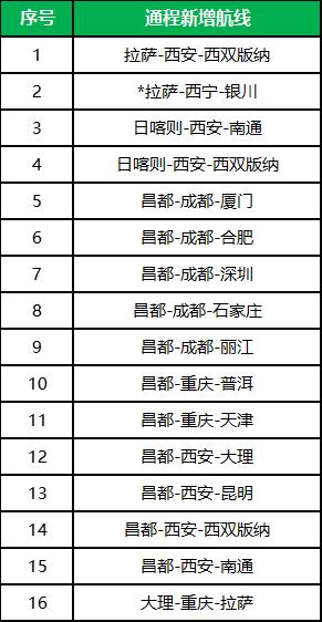 西藏航空通程航班新增16条航线!
