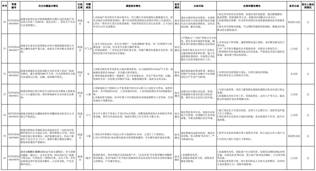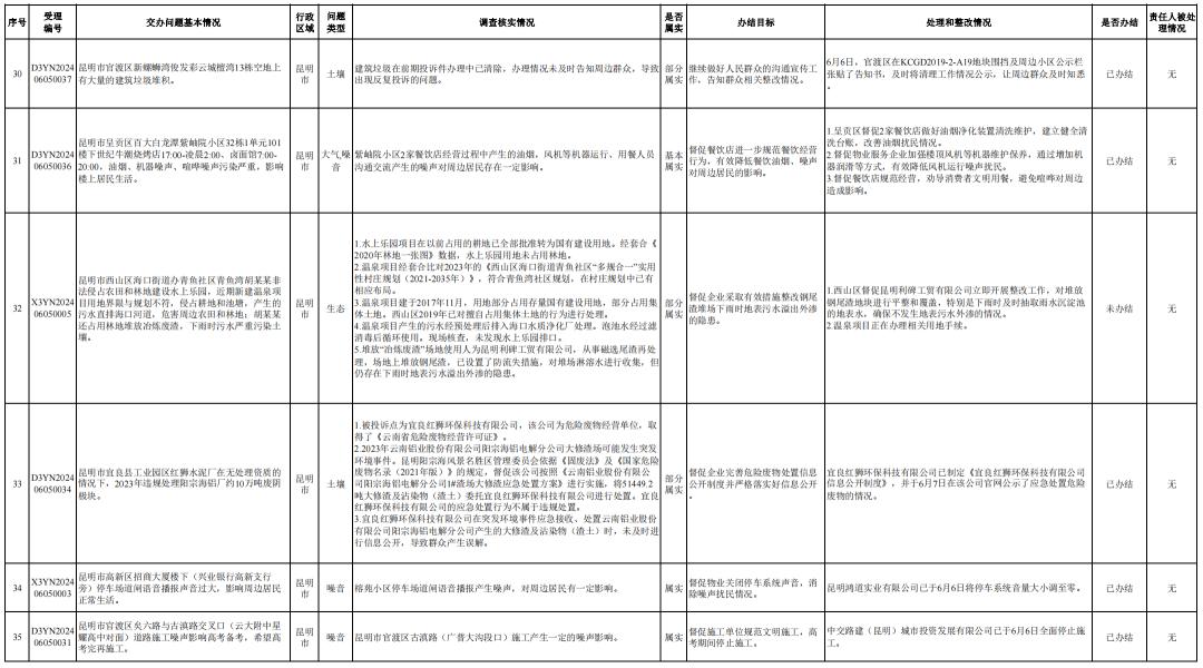 截至2024年6月16日,对中央第七生态环境保护督察组向云南省移交的第二十八批群众信访举报件136件,各责任单位均按要求上报调查处理情况。