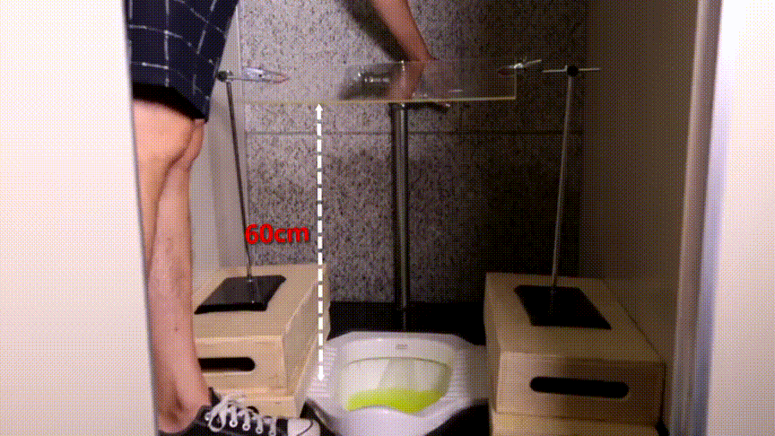 接下来,将高度提升到40厘米蹲坑上的水滴比20厘米少一些