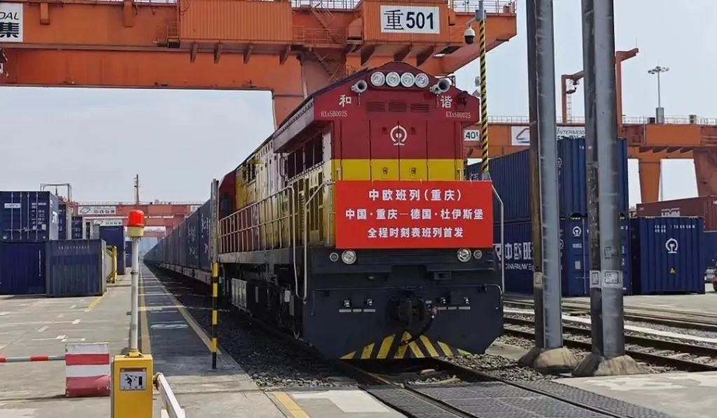 重庆首开全程时刻表中欧班列,高效直通德国杜伊斯堡!15日,满载55柜货物的X8011次中欧班列(重庆-德国杜伊斯堡)从沙坪坝团结村车站发出,同日内,重庆首列全程时刻表进口班列自德国杜伊斯堡同步启程,标志着重庆中欧班列正式迈入全程时刻表行列,并实现去回双向贯通,为重庆对外开放与物流发展开启新篇章。