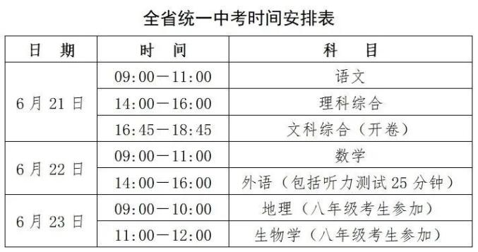 据河北省教育考试院消息,2024年我省初中毕业生升学文化课及八年级地理、生物学学业水平考试(以下简称“中考”)将于6月21日-23日进行。