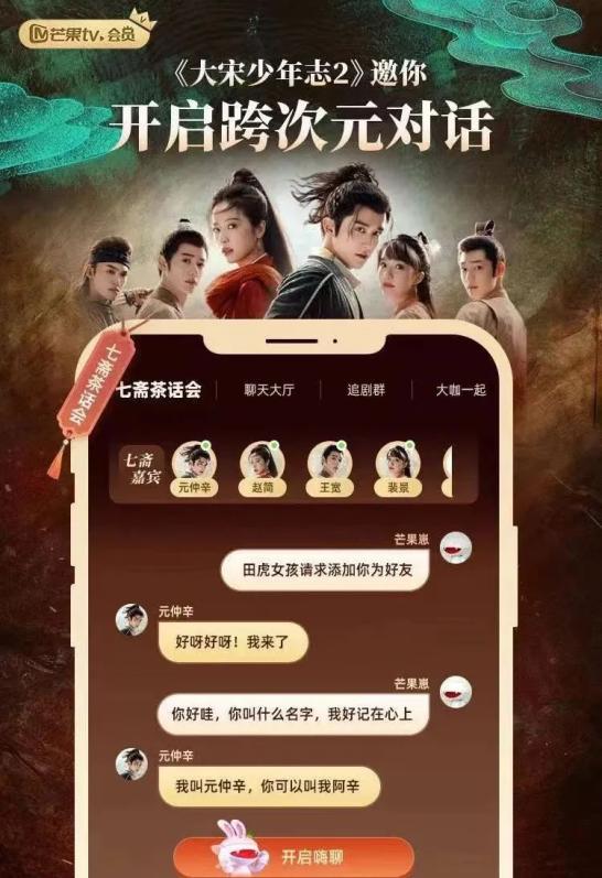 另外,值得一提的是,芒果TV产品技术中心与大会员中心联合推出过首个“AI角色对话”产品,并在热播剧《大宋少年志2》里得以体验,一定程度上,该产品是进一步服务于用户和剧粉的新场景,但其在品牌营销方面也为如何链接IP与用户提供了更多互动性的畅想空间。从长远来看,如何给到品牌客户的定制化服务更具互动性,将是长视频下一轮发力AI营销最大的突破点。