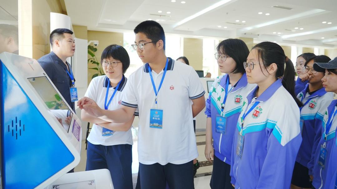 请左右滑动浏览图片“大家观察到我们的办公楼是什么造型了吗?”“大家知道法徽的组成和含义呢?”上午8:30,伴随引导员提出的问题,参观人员相继来到法律之门大厅、诉讼服务中心等场所,详细了解了网上立案、诉讼服务等内容,大家饶有兴趣的体验了诉讼服务一体机、自主立案平台、自助阅卷等信息化成果,纷纷为智慧司法服务点赞。