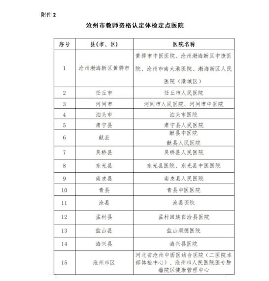 体检时间为6月17日至7月10日(逾期不再进行补检),申请人在完成网报后,持贴有与网报同版照片的《河北省教师资格申请人员体检表》到指定医院体检(体检医院详见附件2),我市指定医院体检结果全市互认,体检结果留存定点医院。《河北省教师资格申请人员体检表》由申请人自行登录“河北省教师资格认定事务中心”官网(http://jszg.hee.gov.cn/),在“资料下载”栏按所申请的教师资格种类下载相应体检表,需A4纸双面打印。