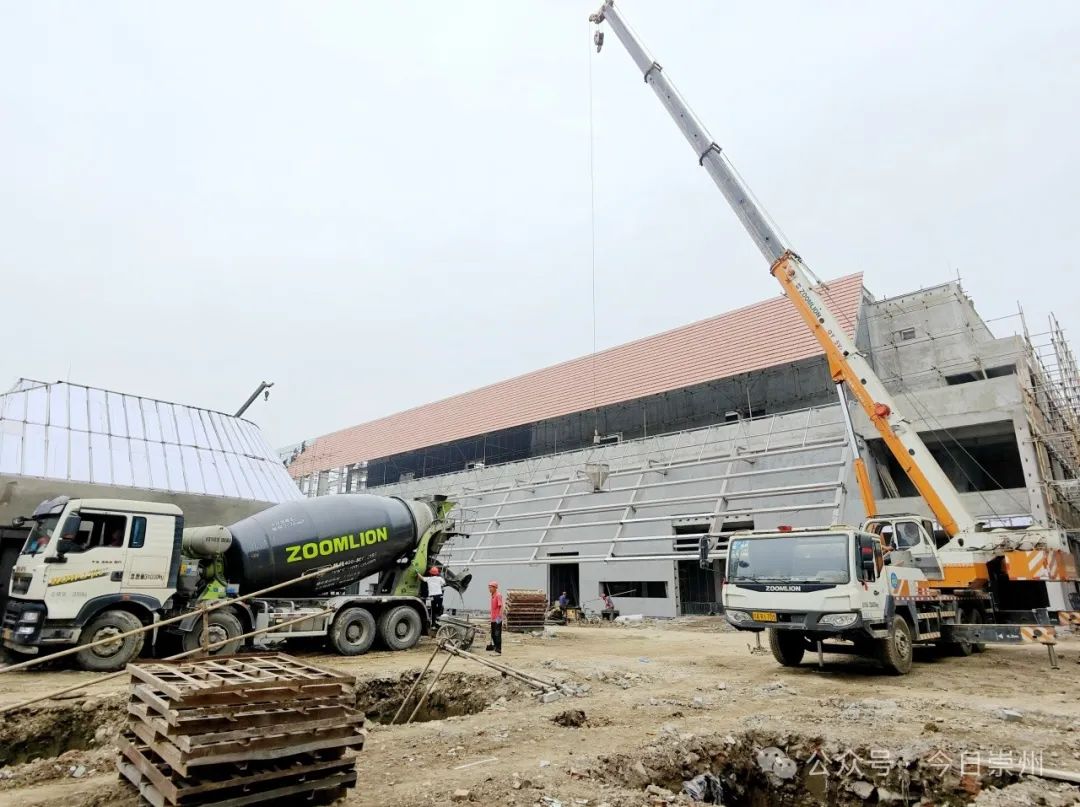 在崇阳街道棋盘村,永利红瓦广场(原永利园)正在紧张施工,现场一派热火朝天的景象。