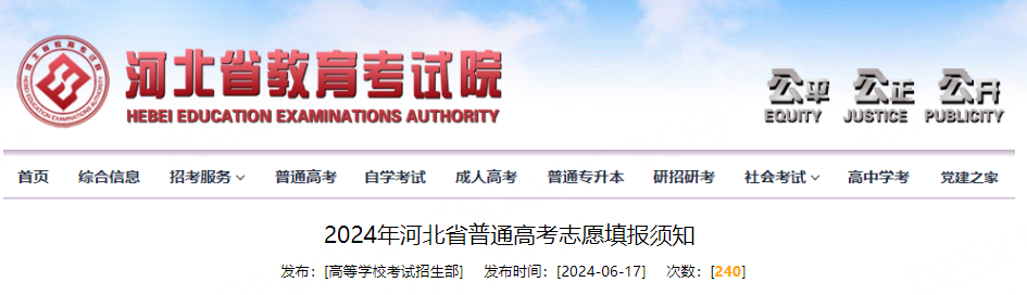 河北省教育考试院发布《2024年河北省普通高考志愿填报须知》↓↓↓