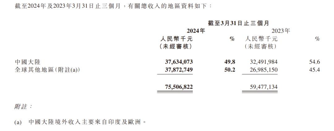 根据小米2024年一季报显示,小米中国大陆境外收入占比从2023年第一季度的45.4%提升至今年一季度的50.2%,该部分收入主要来自于印度及欧洲。