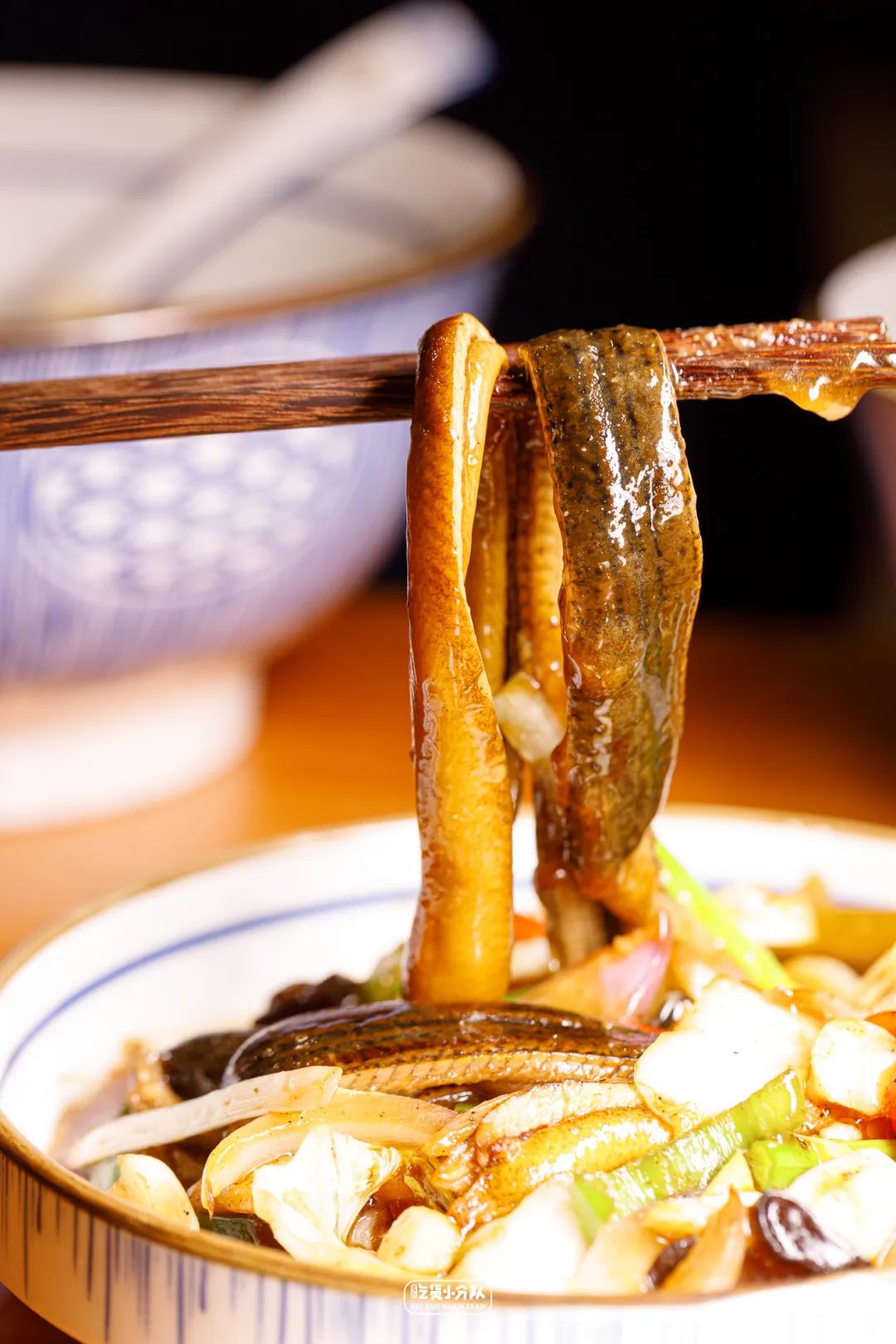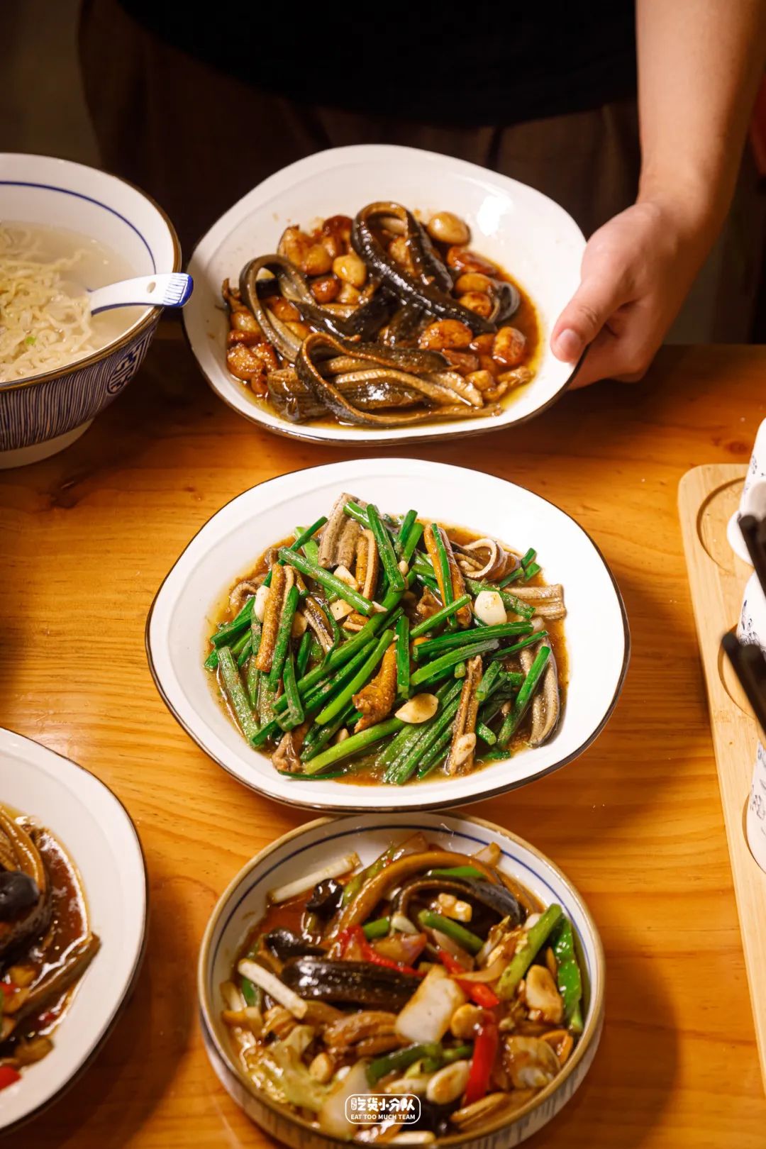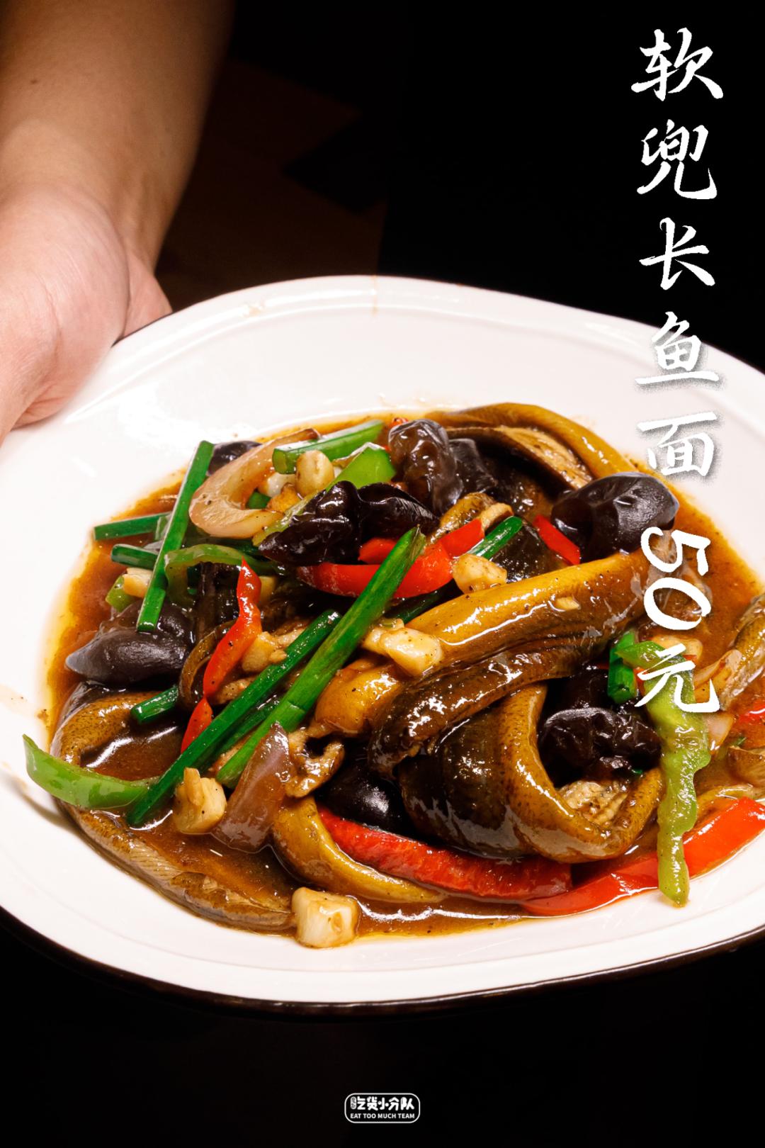 “我们用的是肉质细嫩的苏北笔杆鳝,每天生杀现划,等到出餐时宁可慢一点,也要坚持客人点1份才现炒1份。”餐饮食材行业出身的老板韩大哥,在食材选择上会有种职业病般的严格:“不新鲜不用,规格达不到的也不用。”虽说店里的鳝鱼能选3吃,但真正意义上的“软兜”其实指的是鳝背肉,这道菜很吃师傅对于火候的控制,只有温度得当、时间恰好,才能让背肉微卷成“兜”。