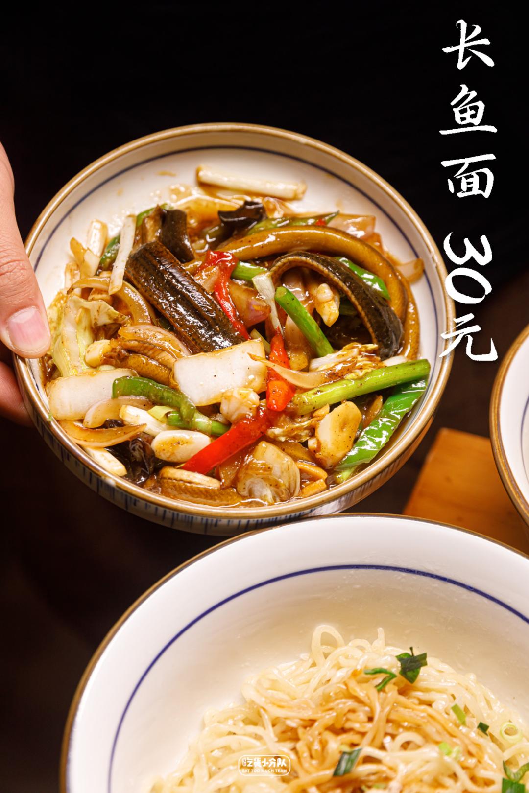 在淮安有“面王”之称的长鱼面,源自淮阳菜的扛把子——「软兜长鱼」,几乎每家淮扬菜馆都会拿它当作头牌,也因此让长鱼面的地位蹭蹭涨,不输同样来自江浙、名气传遍大江南北的杭帮面、苏式面,在当地几乎5步1家,属于旅游必打卡的名片级小吃。