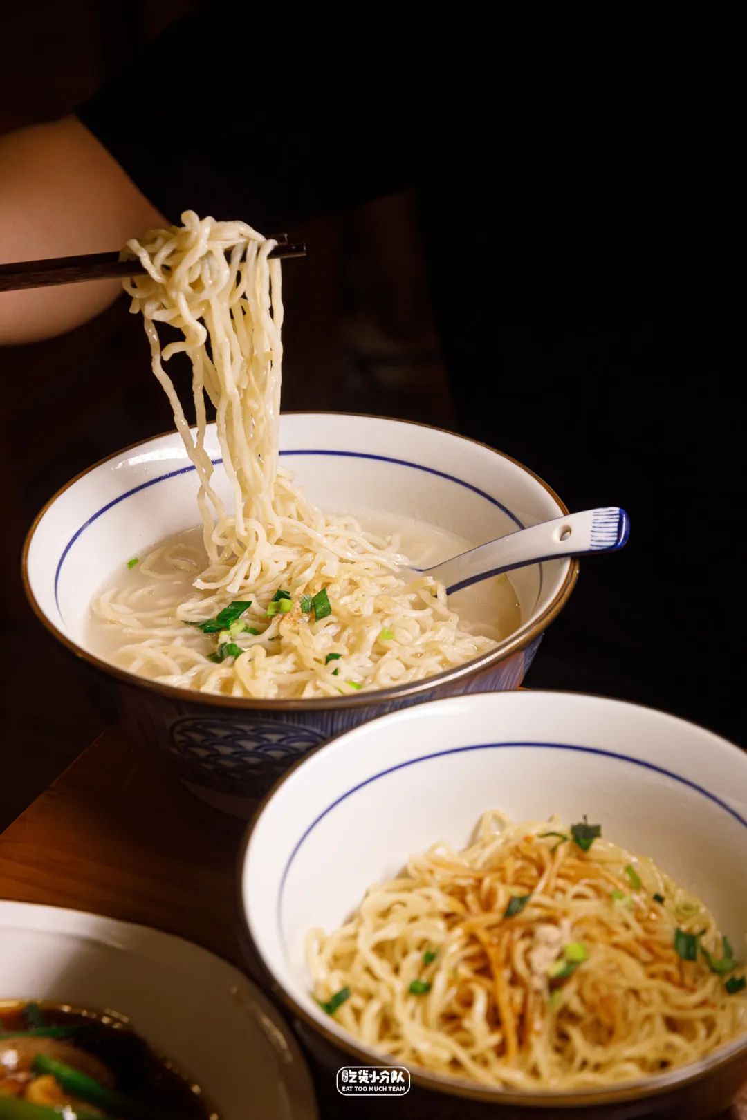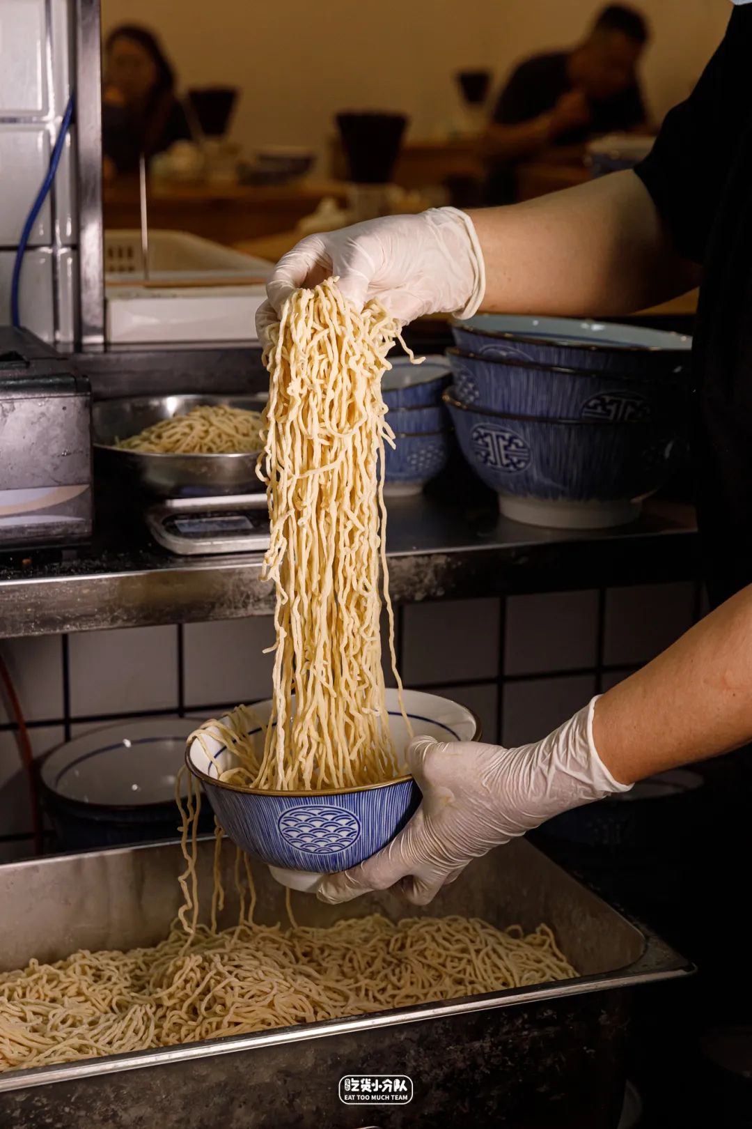 专程从淮安运来的杠子面,重点在于擀面过程:手臂粗的木棍,一头插进墙里,人骑在另一头,利用杠杆原理按压,费时费力,但口感却很特别,放进整个面条界都属于相当Q弹爽滑的那种。考虑到不是所有人能吃惯,可以换本帮面做~