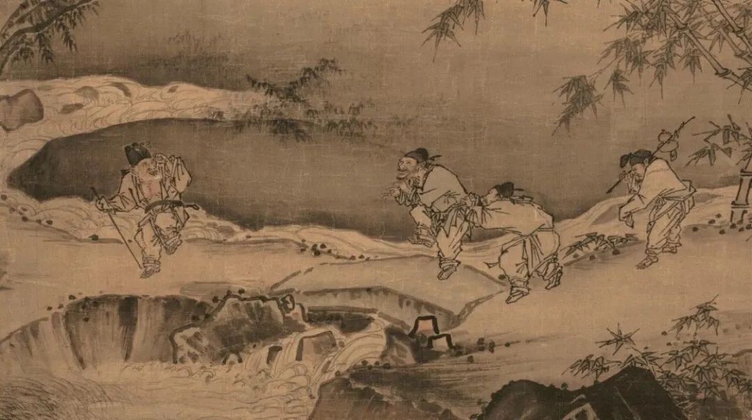 ▲宋·马远《踏歌图》(局部),反映丰收之年,农家老人在田埂上踏歌而行的欢乐情景。图源:网络
