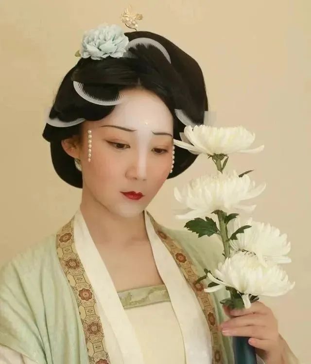 女性也不再追求妆饰的浓艳,妆容上淡雅清秀,不再以胭脂进行大面积的涂抹,而是用简洁的珍珠点缀妆容。这样不仅能和整体的妆容融合在一起,还显得整个人贵气无比。