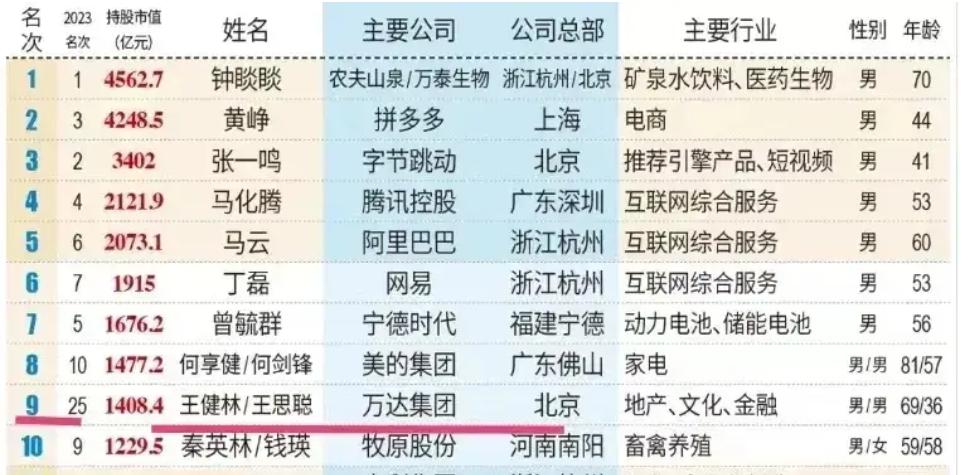 最近,2024新财富500创富榜发布,万达集团创始人王健林与其子王思聪共同以1408.4亿元的总身家位列第9。