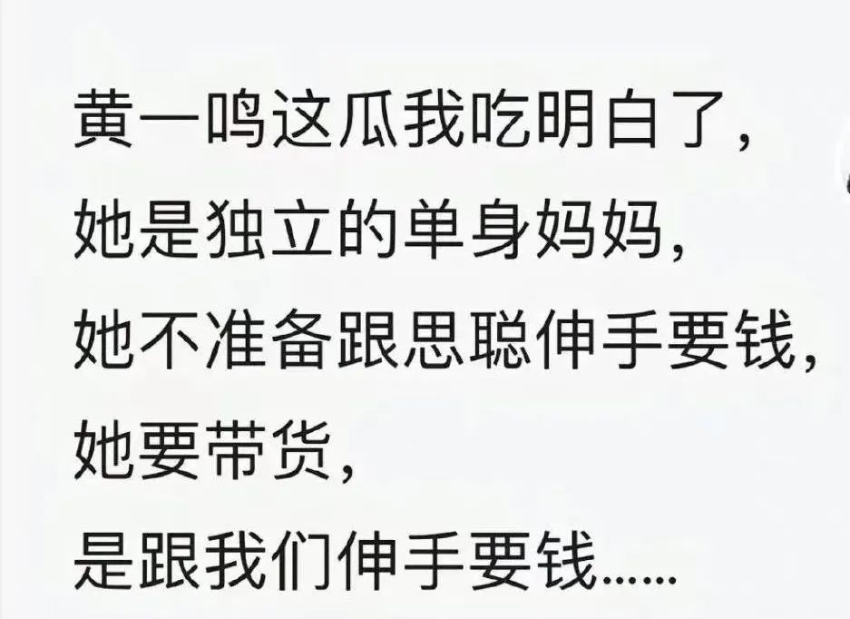 回到这个瓜,如果黄一鸣真的选择“去父留子”,再利用王思聪的名气蹭一波流量搞事业,靠直播带货让自己和孩子过上想要的生活,倒不失为一种明智的做法。