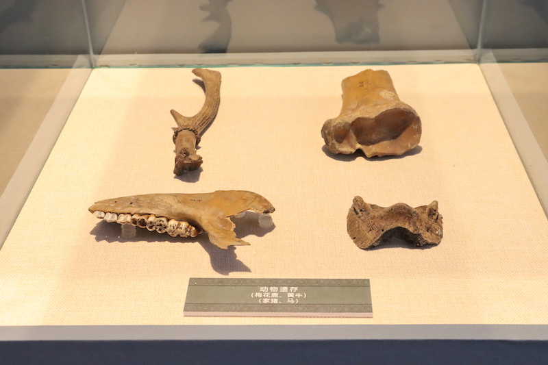梅花鹿角枝、黄牛桡骨丘端 家猪下颌骨、马蹄骨