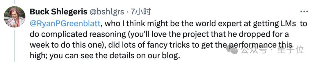 成果发布后,Ryan所在机构CEO Bucket Shlegeris称赞他是世界级的语言模型推理专家,用了很多精致技巧让模型的表现提高到了这样的程度。
