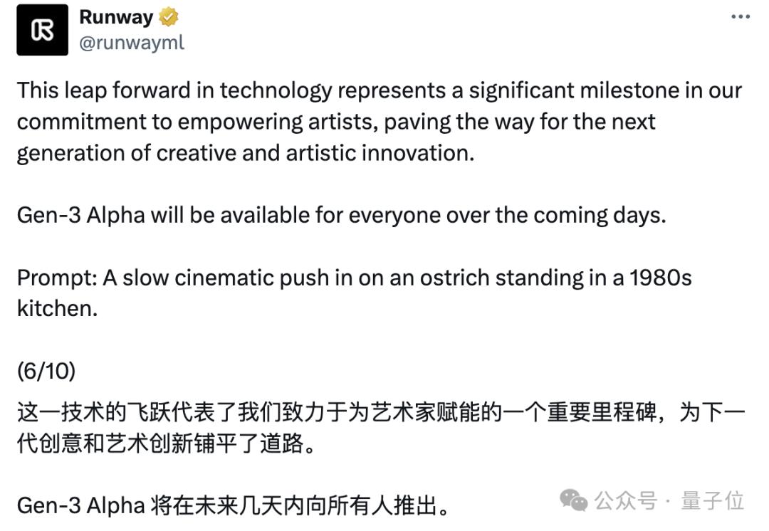 官方表示,Gen-3 Alpha未来几天内就会向所有人开放: