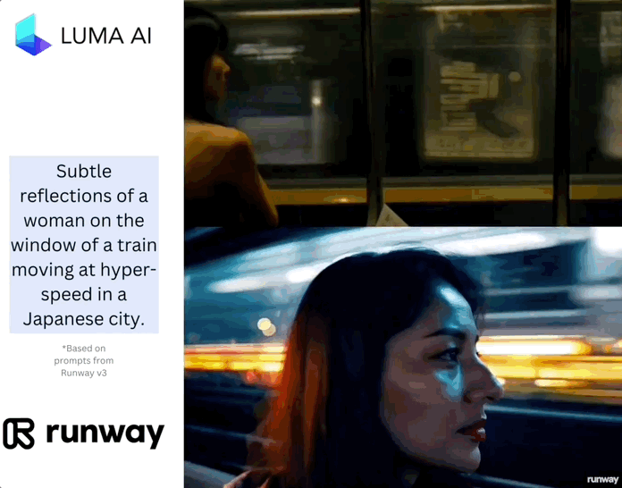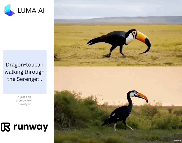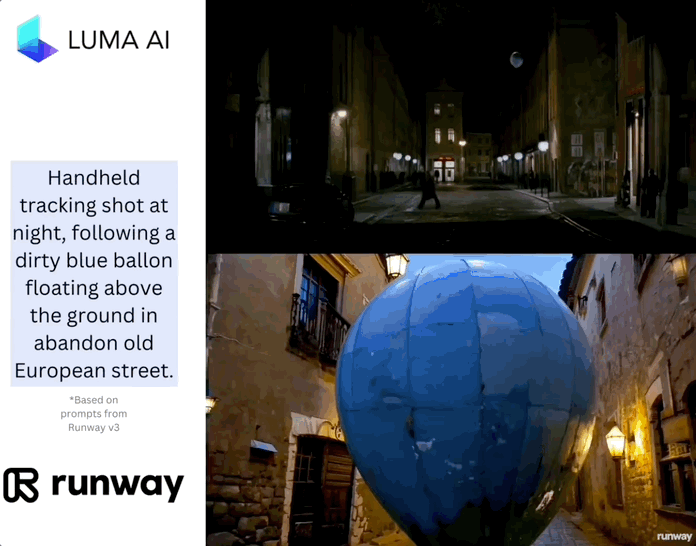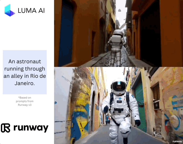 我从Runway中获取了现有视频,并在Luma中使用了相同的提示,虽然对Luma有点不公平吧,但差异那是相当大。
