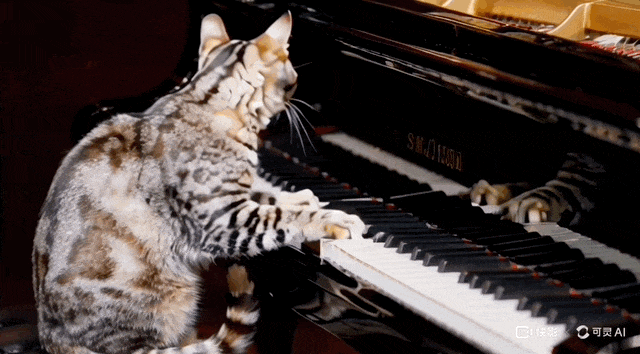 Prompt:An older man playing piano, lit from the side.(一位老人在弹钢琴,侧面被灯光照亮。)