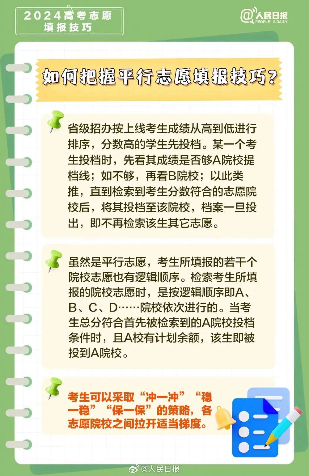 (来源 | 人民日报官方微博)原标题:《转发收藏!2024高考志愿填报技巧来了》