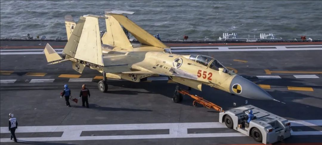 和陆基起降战斗机相比,舰载战斗机的设计明显更为复杂。以歼15为例,对比歼11、歼16战机,歼15增加了前翼,机翼面积也要大一些。在机翼的后缘,研发人员还设计了一套特殊的增升装置,以使歼15在低速下具备良好的飞行性能。为了减少停放时占用的面积,歼15的机翼还可以折叠,其最前方的空速管和最后端的尾锥也可折叠。为了在航母上拦阻着陆,歼15在后机身还加装了一套拦阻钩系统。此外,歼15的起落架跟陆基战斗机相比也要强壮一些。起落架上还设置了几个系留环,当它在舰面停放的时候,可以通过系留索连接到系留环,从而固定在航母甲板的系留座上。