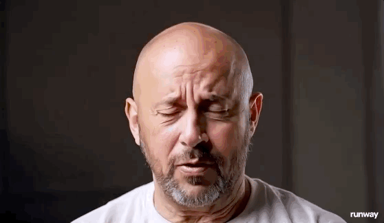 比如在以下视频动图中,Gen-3 Alpha收到的提示词是“一顶卷发假发和墨镜突然落在他的头上,悲伤的秃头中年男子变得高兴起来”,只见生成的视频不仅准确呈现了假发和眼镜的运动路径,而且还将男士由悲到喜的情绪刻画得十分细腻。
