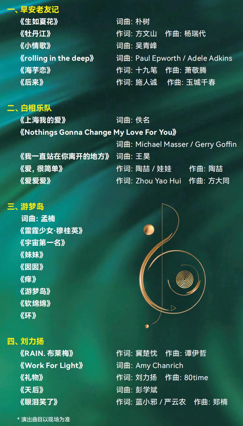 此次“初夏歌会”的演出歌单,相信无论是谁唱、在哪里唱,无论是万人演唱会,还是小小的Live House,当我们再次听到这些熟悉的歌曲被唱起时都会被感动,这也是“去有歌的地方”存在的意义。