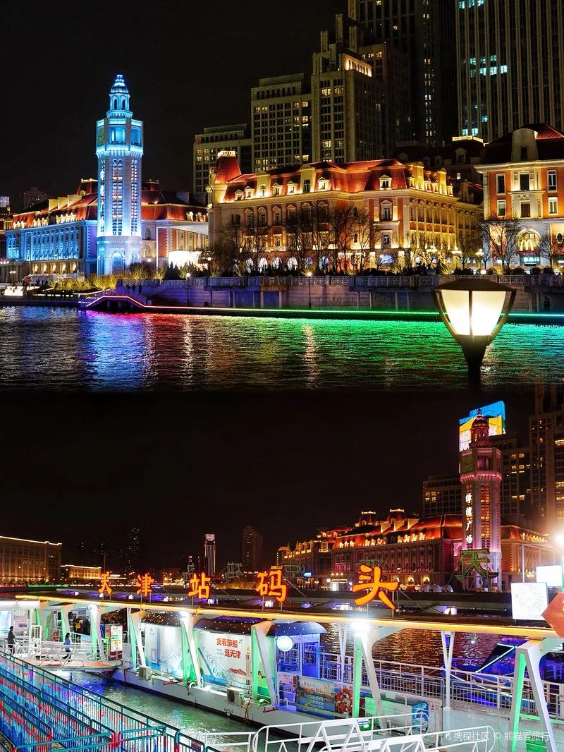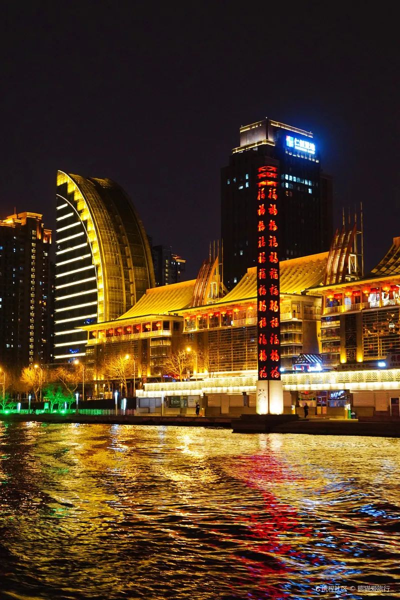 图片来源于签约旅行家@熊猫爱旅行除了在海河边遛弯,还能在码头乘坐天津游船,推荐夜晚乘坐,因为夜景真的超级美丽,河两岸亮起金色的灯光,在船上吹风也太过于惬意了。