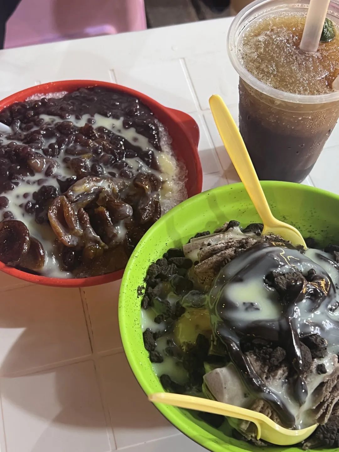 其中我个人最爱的是——铁真刨冰红焖羊肉,这家店夏天卖刨冰,冬天卖红焖羊肉,口味都很棒。他家刨冰可别太好吃了,大胆放心选,每种口味都不会踩雷,你还可以任意加料,冰激凌球或者足量的红豆,只要是你爱吃的都可以加。