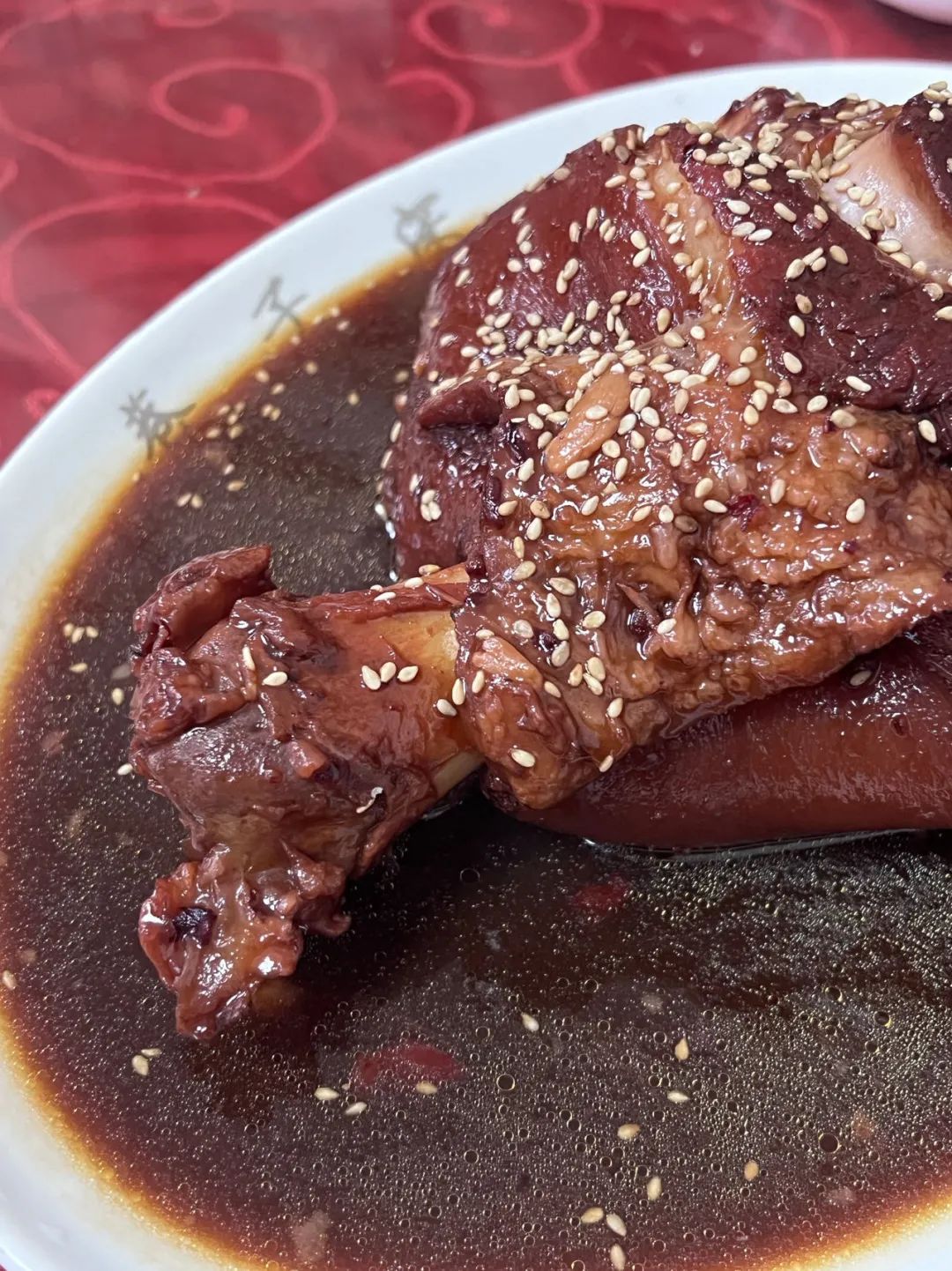 这家店最大的特色就是肘子,我敢说你应该没吃过这么好吃入味的肘子了,口味偏咸甜口,超大一只肘子炖得软烂,肘子限量,通常在1点左右肘子就出售完毕,店很小很小,只有四桌,试试提前预定。