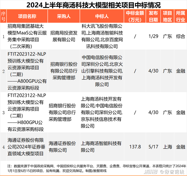 其中一个就来自海通证券的“2024年证券垂直领域大模型项目”,需要定制开发证券行业大语言模型和海通私域检索问答应用,价值137.8万元。而除了和海通证券有大模型方面的合作之外,据悉,商汤的日日新大模型还与WPS Office、阅文等企业都有合作。