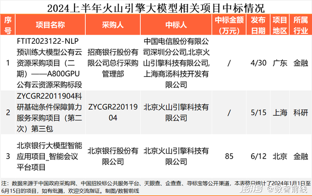 不过,随着大模型服务的推出,并率先打响价格战,与大模型落地应用相关的项目正在被其收入囊中。今年6月,“北京银行大模型智能应用项目_智能会议平台项目”公布中标人选,火山引擎以85万元报价中标。
