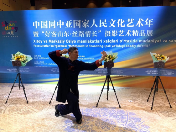鸳鸯螳螂拳传承人孙日成在对外文化交流活动现场